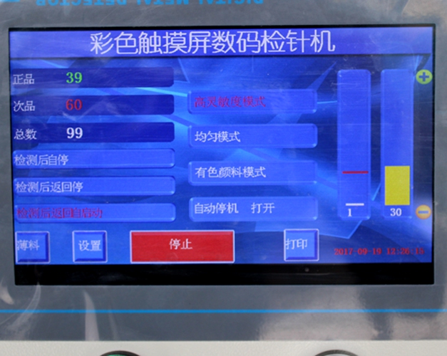產品名稱:彩色觸屏輸送式檢針機|觸屏輸送式驗針機